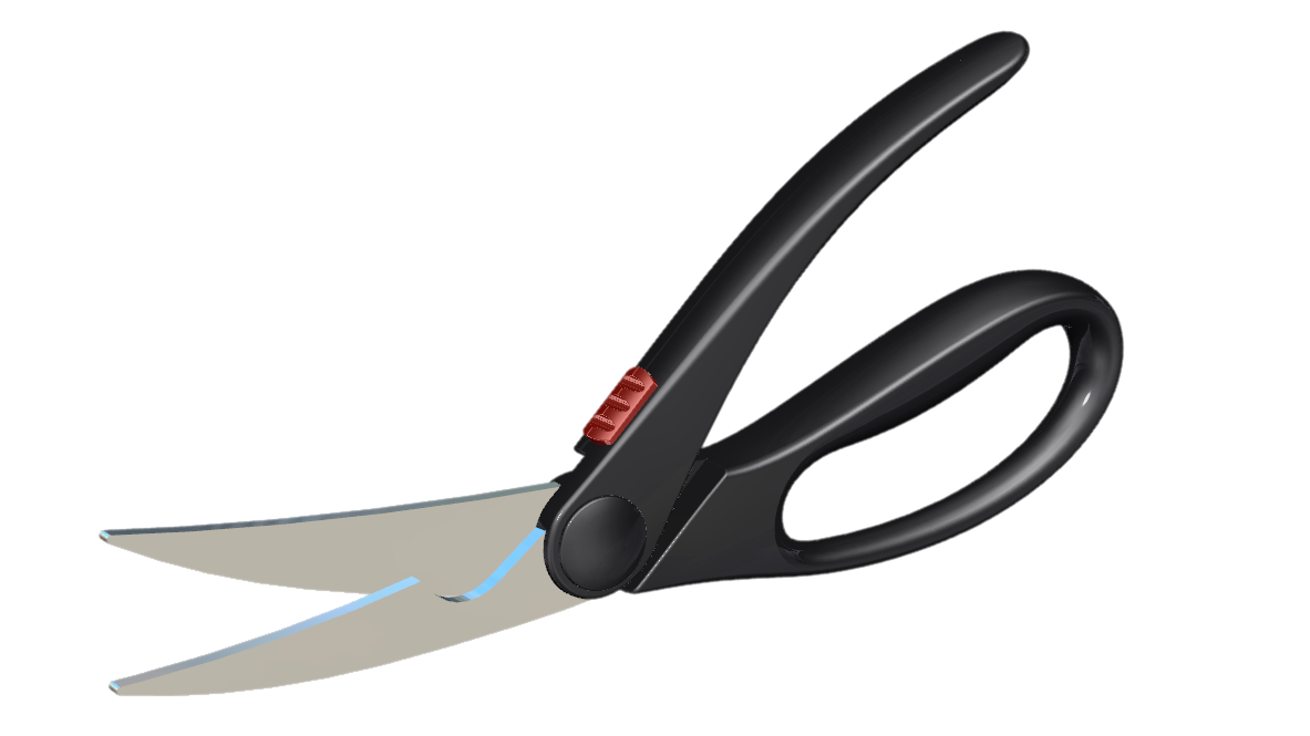 Fjerkræsaks udført for Fiskars. Saksen er designet til brug for både højre- og venstrehåndede. Designet er udført af Tobias Wandrup, mens LEONARDO ENGINEERING har konstrueret CAD modellen for fremstilling af saksen.